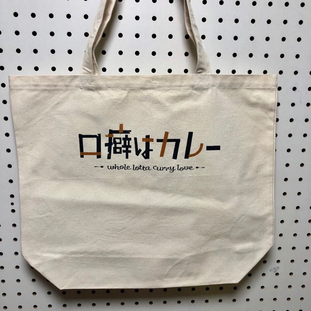 大阪名物と言えば… スパイスカレー!なんて言われる昨今、 カレー好きに捧げるグッズを作りました。 肉厚のあるキャンバストートバック。 タテ 36cm ヨコ 26cm マチ 10cm 持ち手 45cm 「口癖はカレー」 メンバー8000人をこえるFacebookグループ。 大阪最大規模?のカレーと音楽のイベントを過去4回開催。 その際のグッズ製作を担当し、 当日販売していたグッズのリプロダクションです。