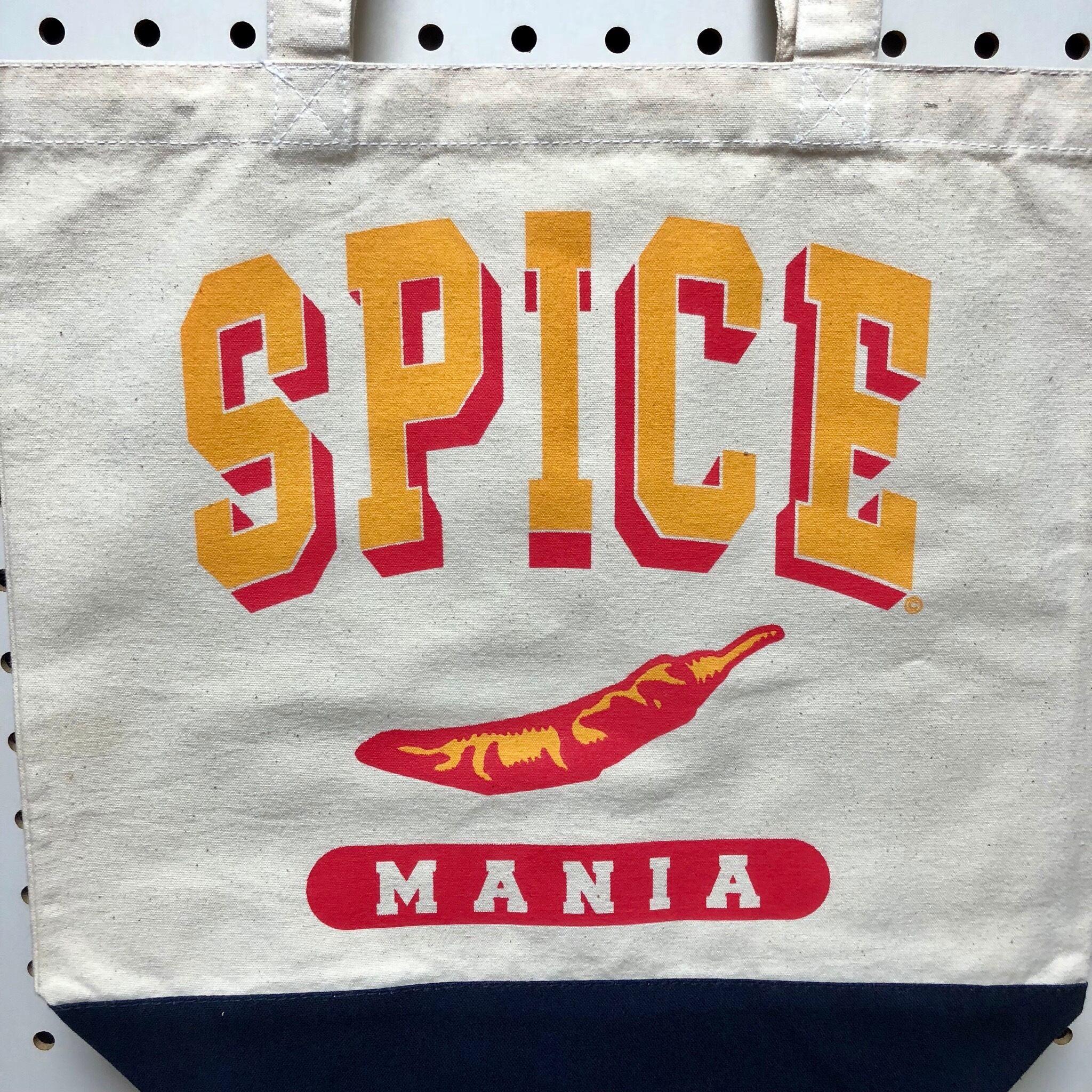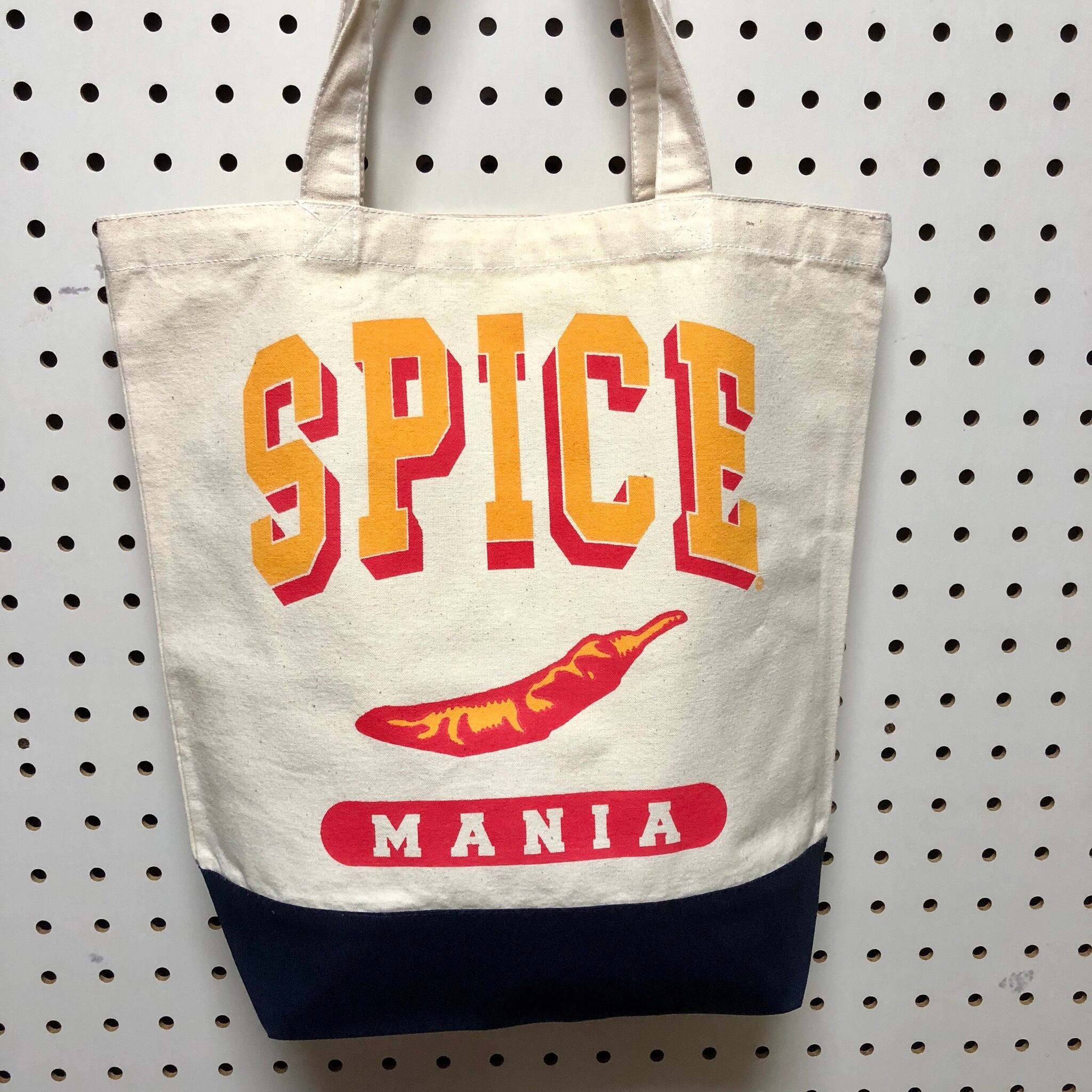 キャンバス地のバイカラー トートバッグ。